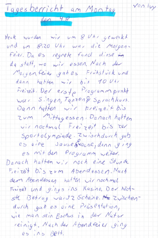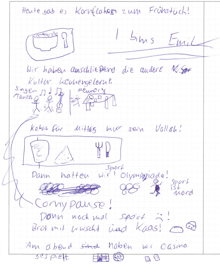 Heute haben wir uns voller Elan dem Entdecken aller Traditionen und Gewohnheiten unseres Städtchens gewidmet. Am Vormittag haben wir die beiden Amtssprachen gelernt, die Grundschritte des traditionellen Tanzes geübt und klassische Lieder der Stadt gesungen. Zum Mittagessen gab es die erste typische Spezialität aus Gaisthal – hausgemachtes Gyros in einem frischen Brötchen mit viel Gemüse.