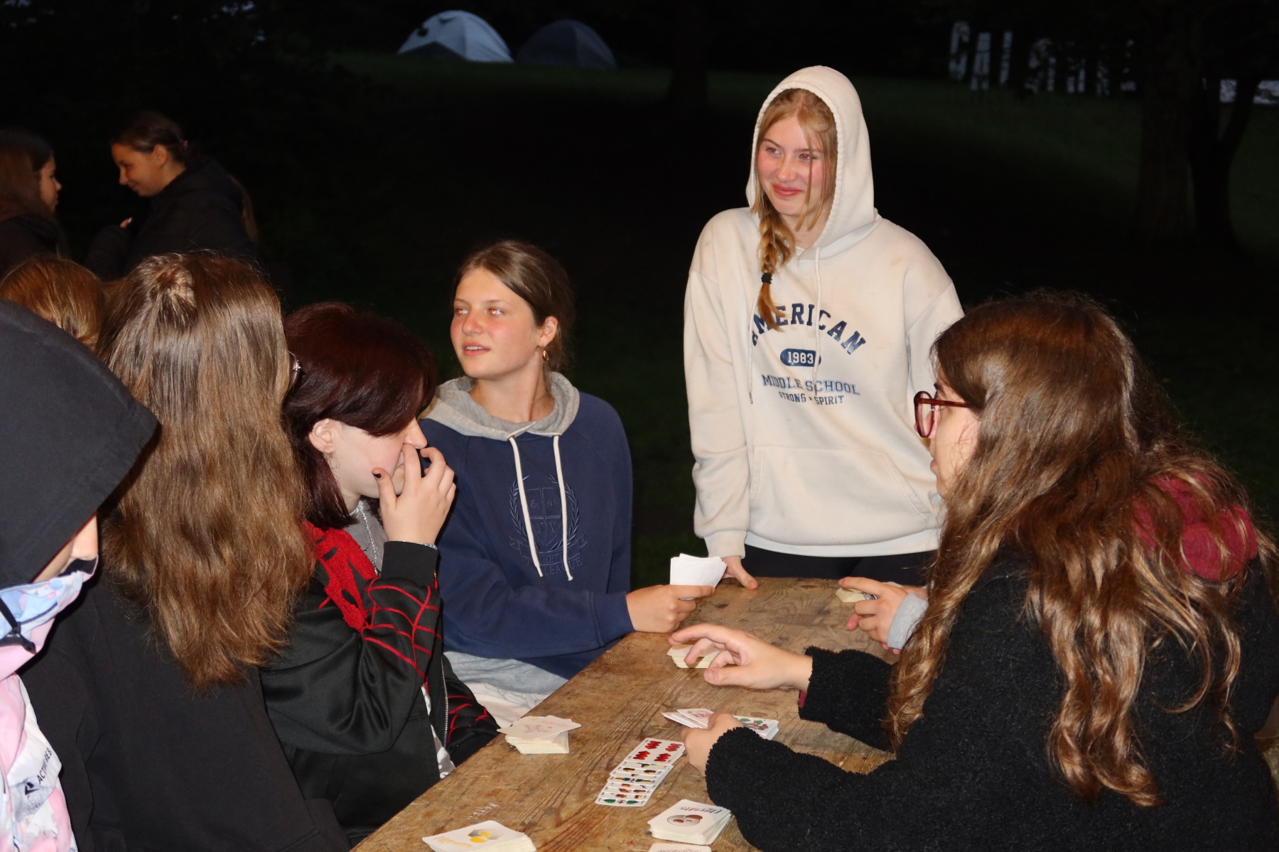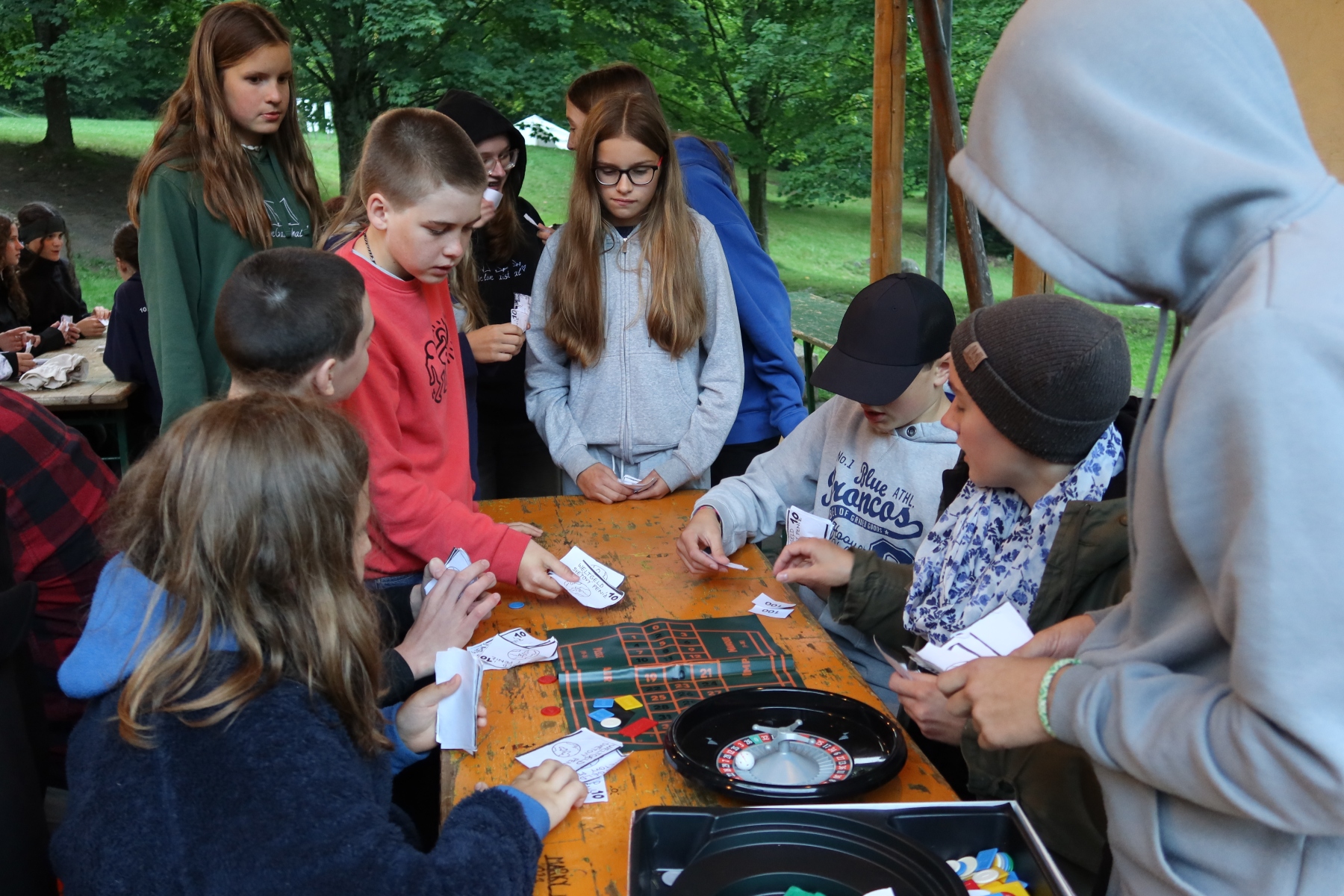 Am Nachmittag haben wir als Willkommensgeschenk Eintrittskarten für die Olympiade bekommen, an der wir dann alle teilgenommen haben. Durch diese exklusiven Tickets haben wir eine Menge Geld gespart. Außerdem hat uns die Besitzerin des örtlichen Casinos besucht und uns versichert, dass ein Abend im Casino genau das Richtige für heute sei.