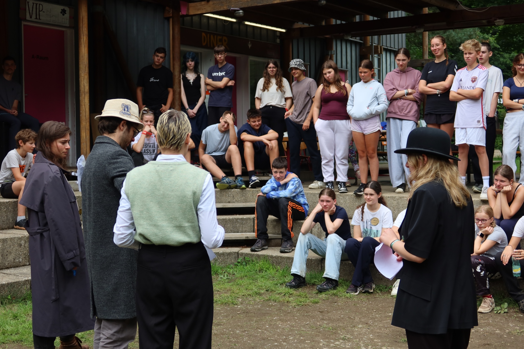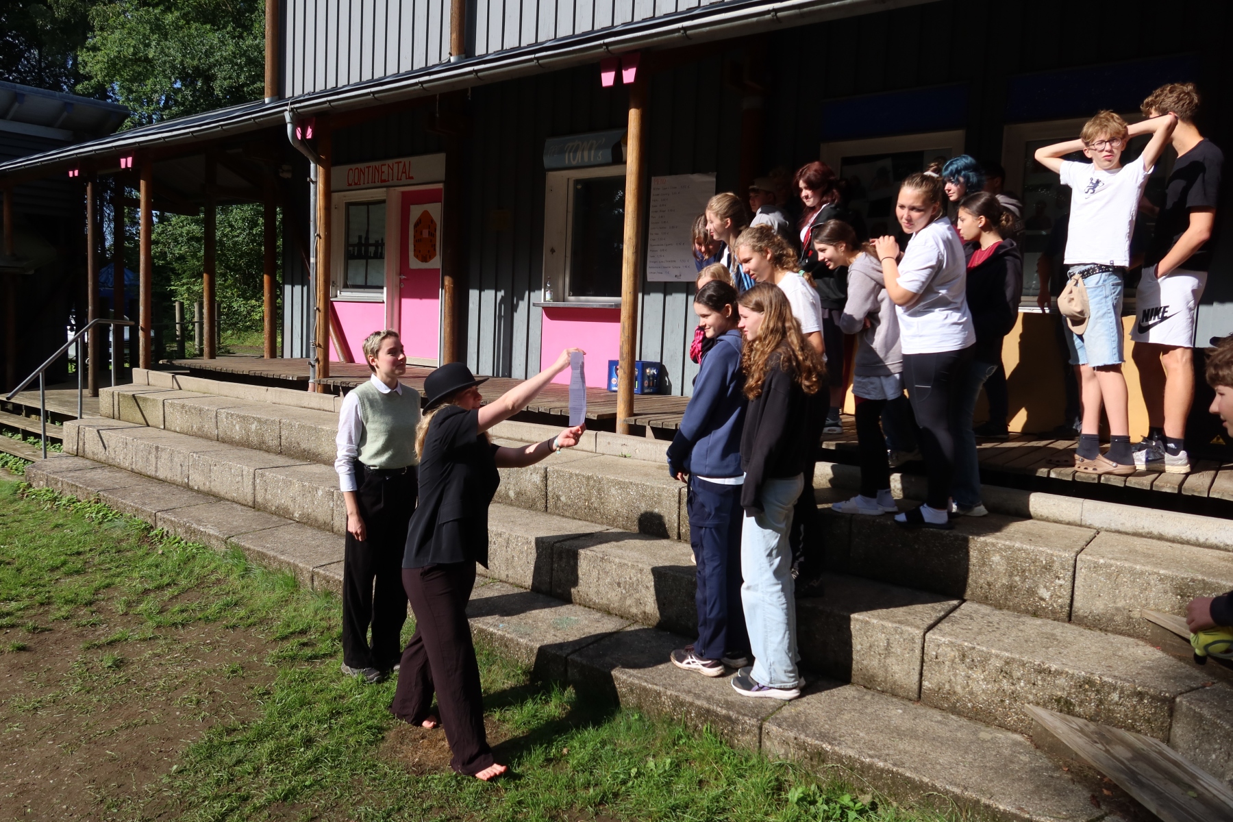 Am Abend ließen wir es bei einigen actionreichen Spielen etwas lockerer angehen und fieberten mit, welches Team am Ende gewinnen würde. Sogar ein Team aus einheimischen Bewohnern schloss sich uns an. Wir standen schon im großen Finale und warteten gespannt, wem der letzte Punkt und damit der Sieg zugesprochen würde. Plötzlich erschien eine der Einheimischen – begleitet von zwei bewaffneten, maskierten Gestalten. Ohne Skrupel bestachen sie die Punkteschreiberin, gewannen das Spiel und durften somit entscheiden, welcher gemeinnützigen Organisation die Börsengewinne gespendet werden. Sie wählten die Organisation „Nerv“ – von der wir bislang noch nie etwas gehört hatten.