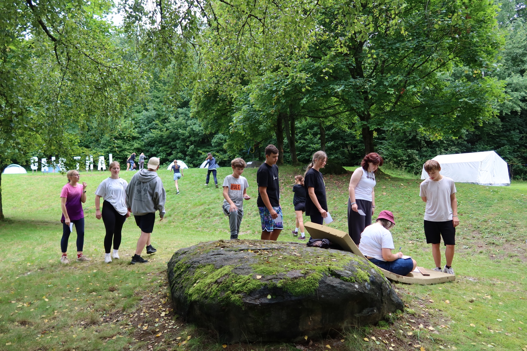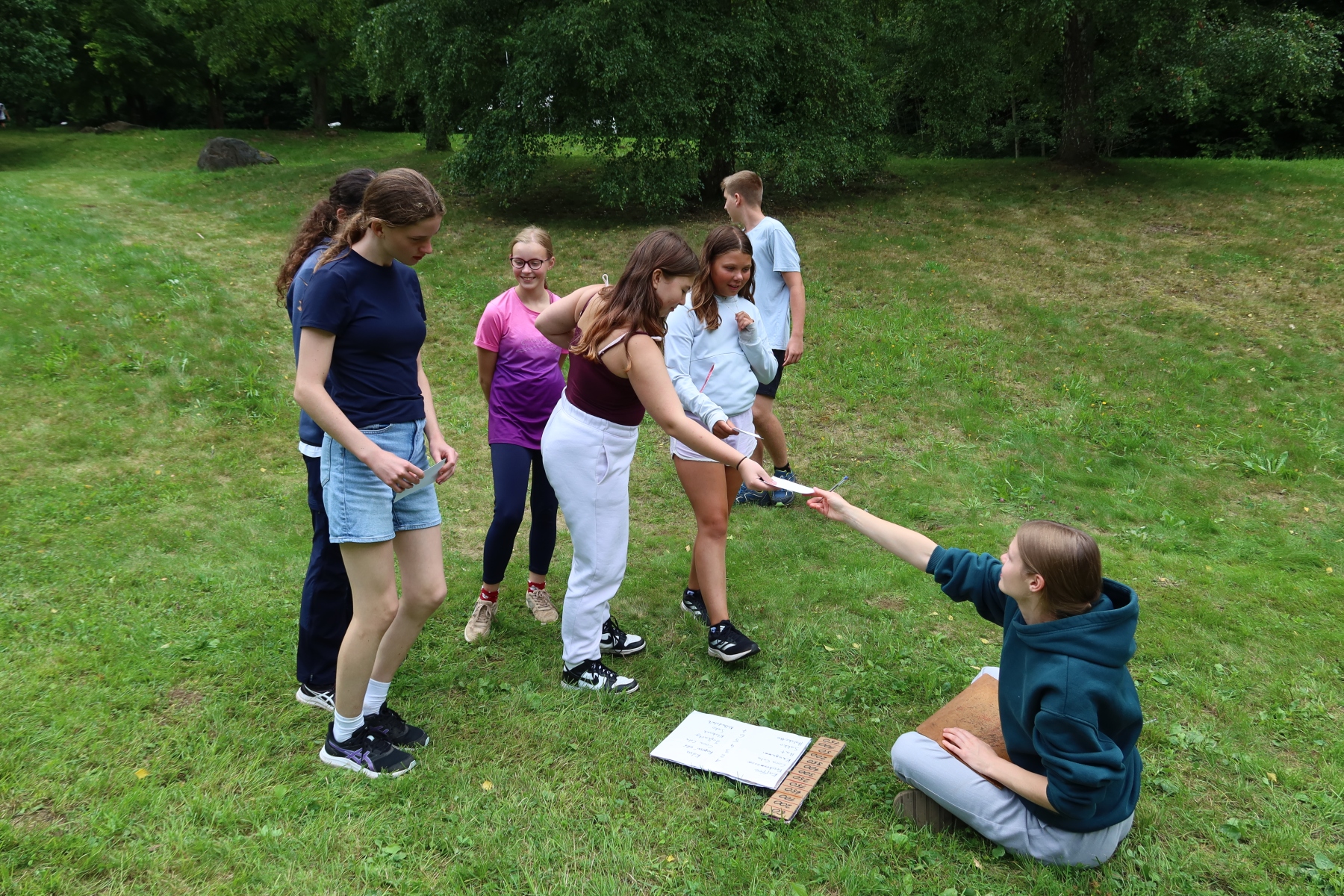 Den ganzen Vormittag über suchten wir nach Hinweisen, um den Code zu knacken. Schließlich ist es uns gelungen. Aus der geheimnisvollen Botschaft konnten wir ableiten, wo sich der im Text erwähnte Ort befinden könnte. Und tatsächlich – dort fanden wir einen Umschlag. Merkwürdig war jedoch, dass sich darin nicht nur Geld befand, sondern auch Pinsel und Tusche – fast so, als ob das Geld gerade erst gemalt worden wäre…