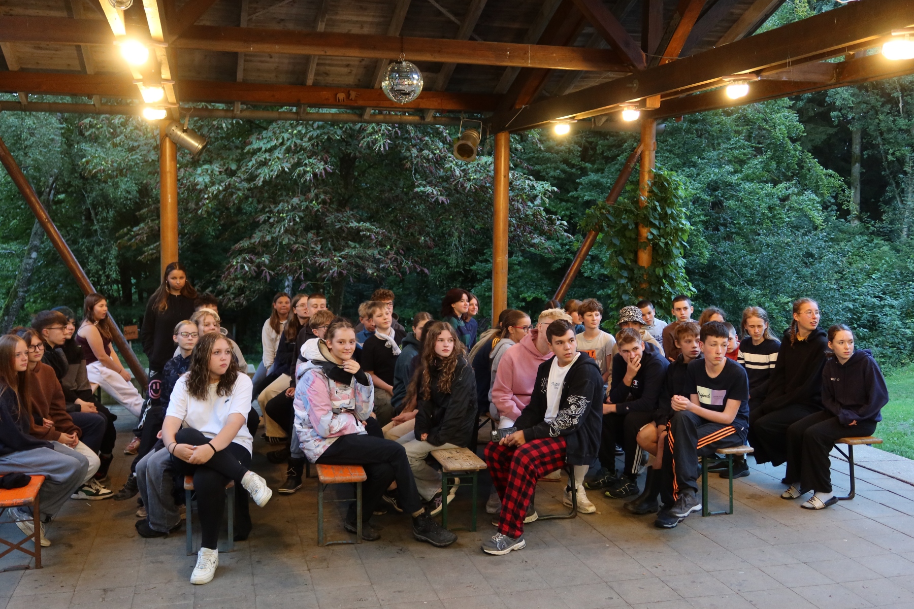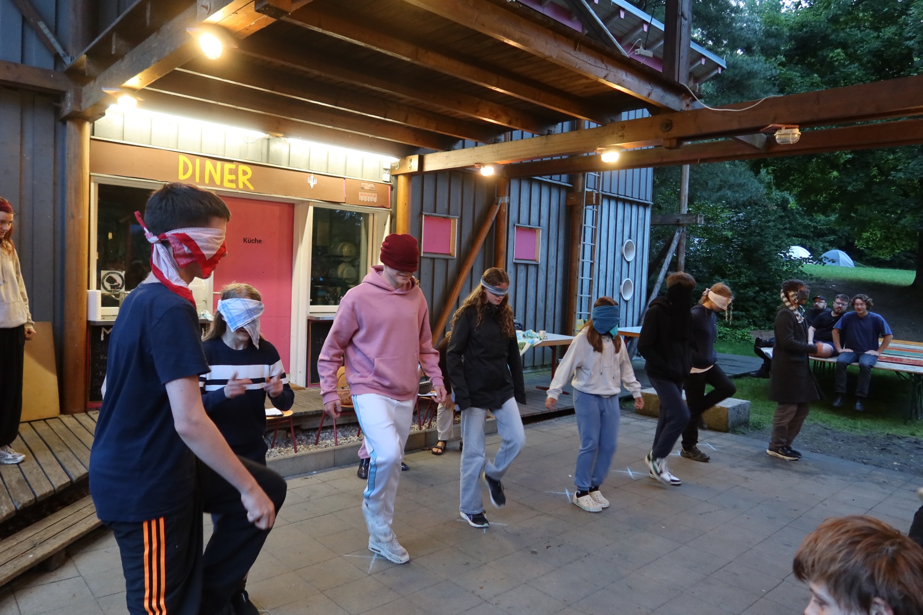 Večer jsme si užili trošku odlehčené zábavy během několika akčních her a těšili jsme se, kdo nakonec vyhraje. Dokonce se k nám přidal i tým místních obyvatel. Už jsme byli ve finále večera a čekali jsme, komu se připíše poslední bod, a tím i vyhraje. Když tu se najednou objevila jedna z místních obyvatelek v doprovodu dvou ozbrojených maskovaných společníků. Bezostyšně uplatili zapisovatelku bodů, a tím vyhráli, tudíž si mohli i vybrat neziskovou organizaci, které získané peníze z burzy věnujeme. Vybrali si Organizaci Nerv, o které jsme dosud nikdy neslyšeli.