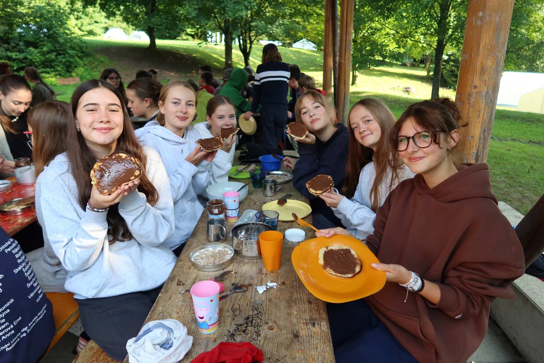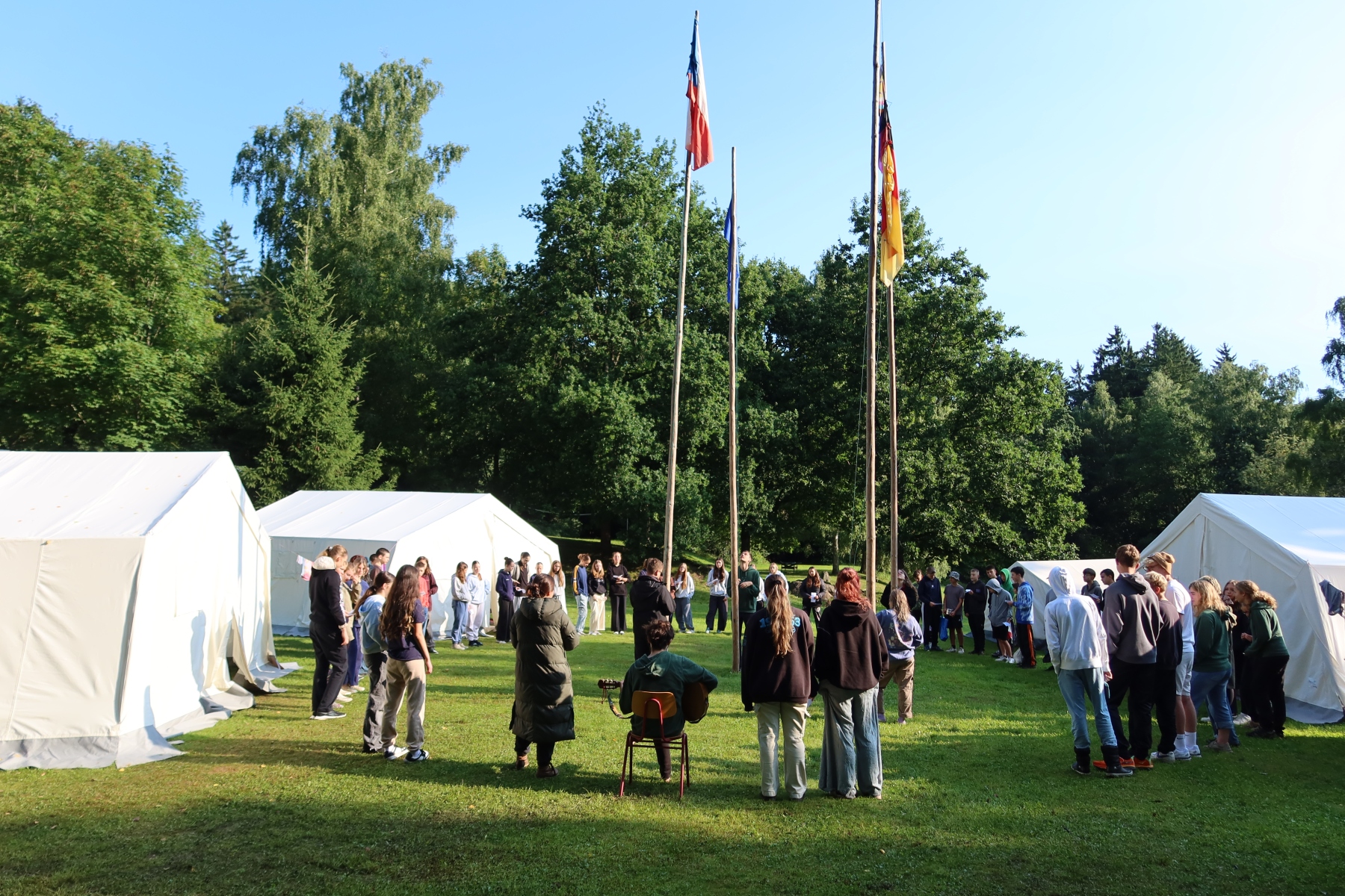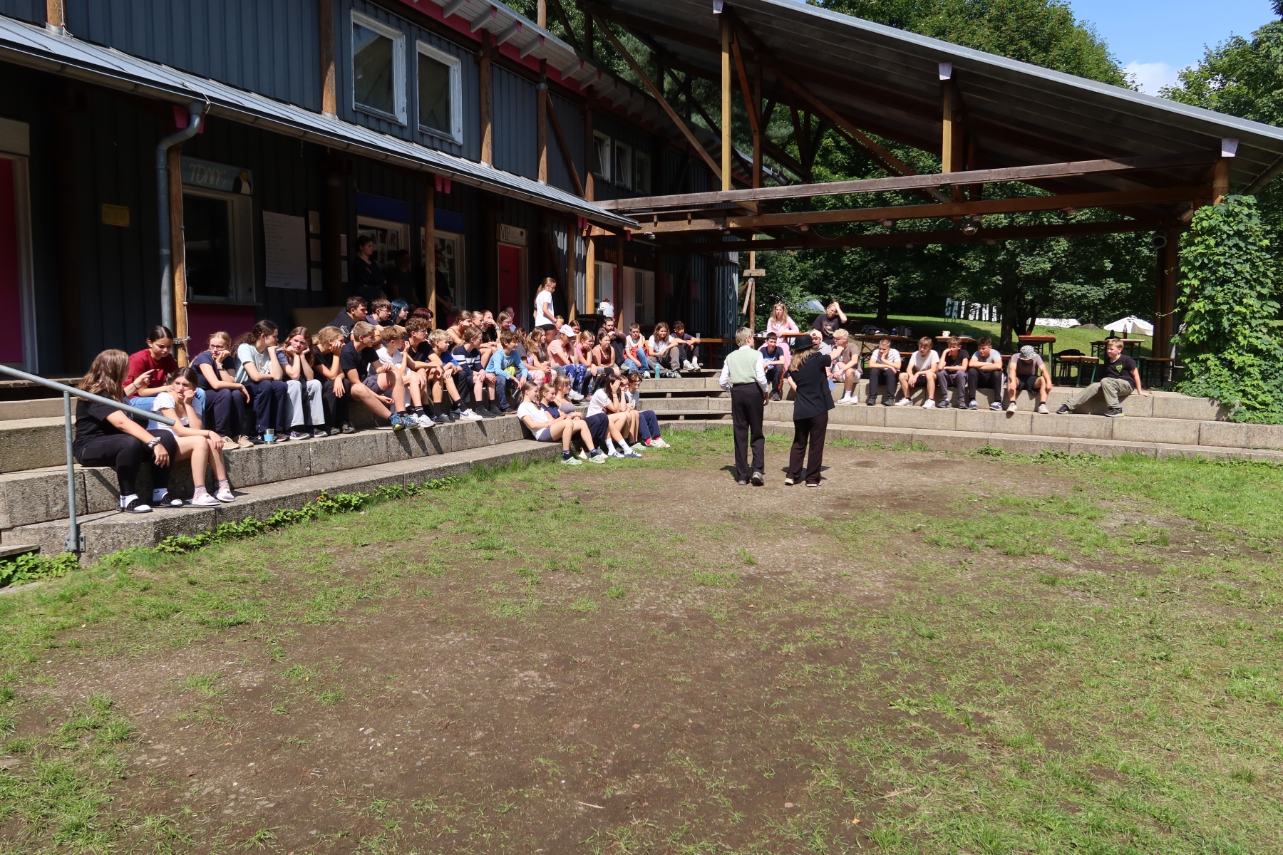 Nach einem leckeren Abendessen im Subway-Stil wollten wir uns schließlich beim Lagerfeuer etwas erholen. Dort begegneten wir erneut der Waffenhändlerin – nach der Erfahrung des Tages entschieden wir uns jedoch für einen Friedensschluss und verbrachten den Abend gemeinsam beim Singen. Die abendliche Feier war gerade vorbei, als wir einen Hinweis von der Polizei bekamen: Die Falschgeld-Chefin solle sich angeblich in der Nähe des Lagers aufhalten. Also machten wir uns auf zu einem gruseligen Nachtspaziergang – und wurden am Ende Zeugen ihrer Festnahme. Doch die Festnahme verlief seltsam – fast so, als ob die beiden Hauptpolizisten sie gar nicht wirklich verhaften wollten…