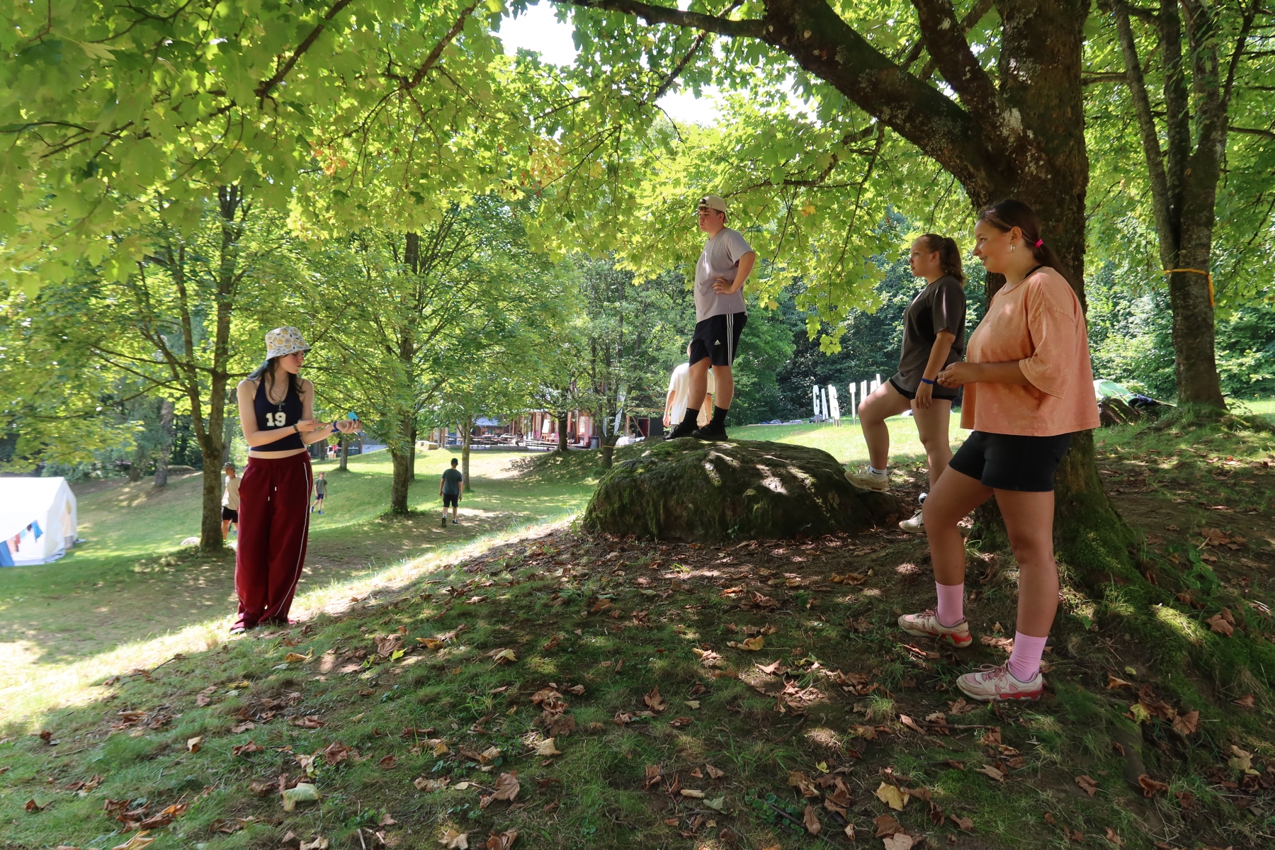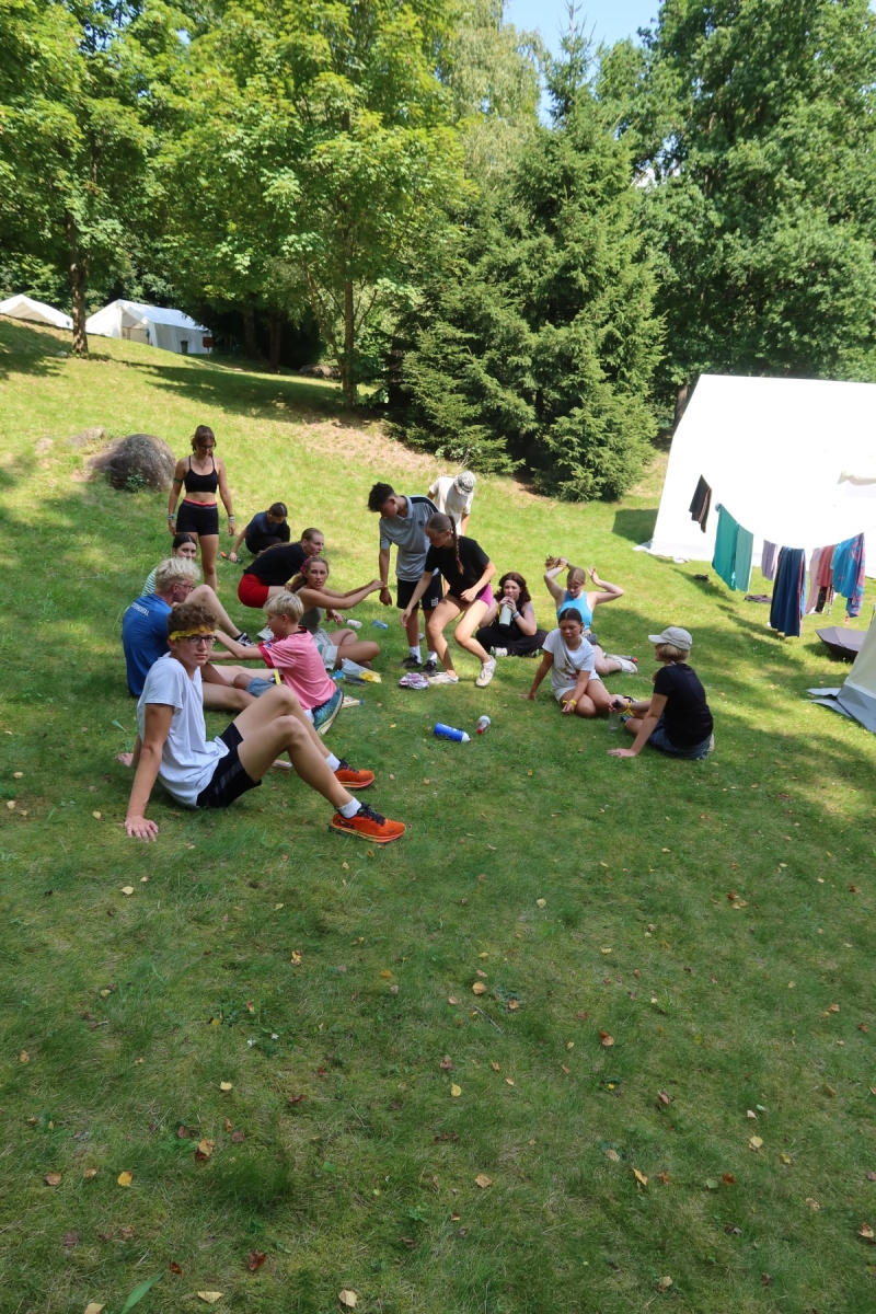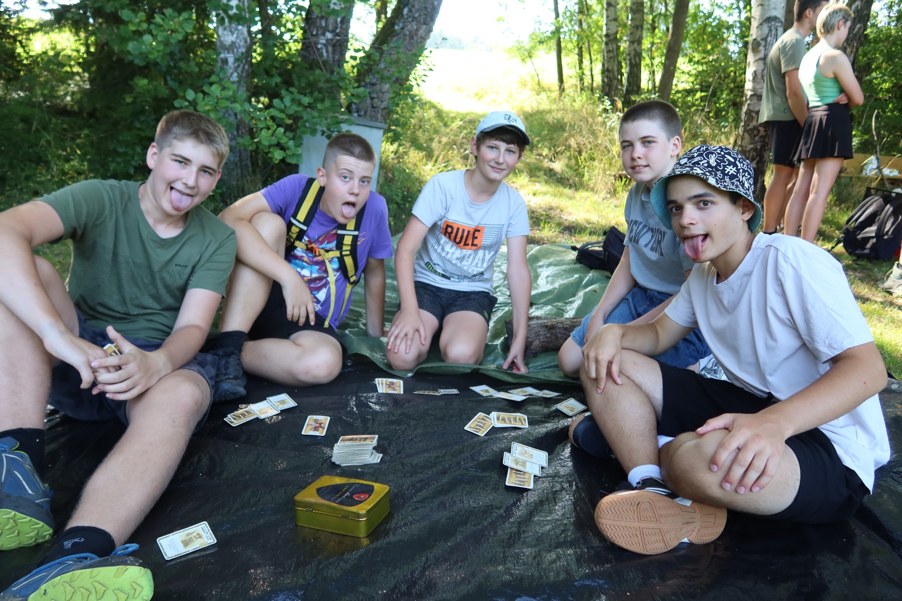 Heute morgen konnten wir uns einen etwas längeren Schlaf gönnen. Nach einem leckeren Frühstück bemerkten wir jedoch, dass sich um uns herum verschiedene Straßenkriminelle versammelten. Zum Glück griff die Polizei ein und nahm sie schnell fest, bevor sie den Pamperladen ausrauben konnten. Danach beschloss die Polizei, mit der schrittweisen Säuberung des Untergrunds von New Gaisthal zu beginnen – zunächst bei den weniger gefährlichen Kriminellen, und später auch bei denen, die an der Spitze der Verbrecherpyramide stehen. Im anschließenden Spiel schlüpften wir selbst in die Rolle der Ordnungshüter – wir rannten über das Spielfeld und versuchten, alle entkommenen Verbrecher einzufangen. Am Nachmittag erreichte uns ein Brief von Tadeáš, der uns in die kleine Stadt Rackenthal einlud. Natürlich waren wir neugierig, was er uns mitteilen wollte, und machten uns auf den Weg zu ihm. Dort angekommen zögerte Tadeáš jedoch zunächst, etwas zu verraten, da er in seiner Stadt niemandem mehr vertrauen kann. Schließlich fanden wir über verschiedene Spiele, die wir zusammen spielten, einen Zugang zu ihm. Nach und nach begann er uns zu vertrauen und versprach, uns wichtige Nachrichten aus dem Untergrund zu übermitteln. Mit dieser neuen Hoffnung kehrten wir ins Lager zurück. Aus Tadeáš’s Informationen erfuhren wir, dass sich noch viele Kriminelle in Fabriken befinden, wir aber nicht genau wissen wer das ist. Also machten wir uns auf, verschiedene Geschäfte und Werkstätten von New Gaisthal zu erkunden, und sahen mit eigenen Augen, unter welch schweren Bedingungen die Menschen dort arbeiten.
